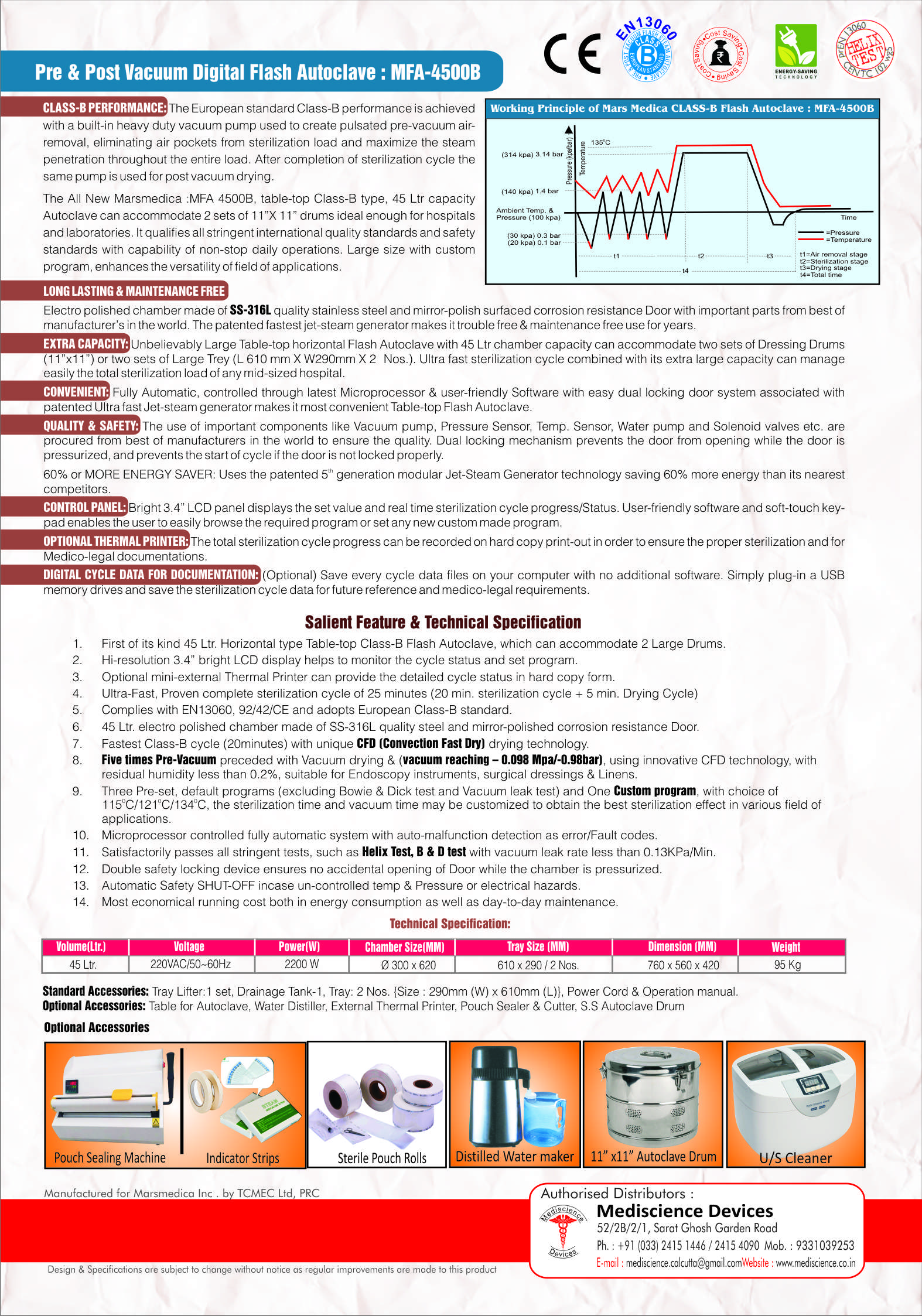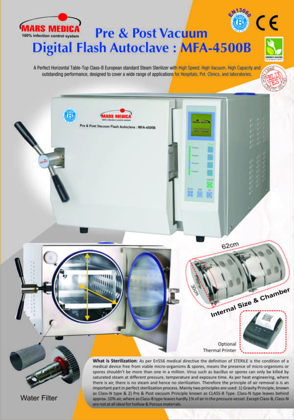 Marsmedica pre & post Vacuum Digital Flash Autoclave : MFA-4500B